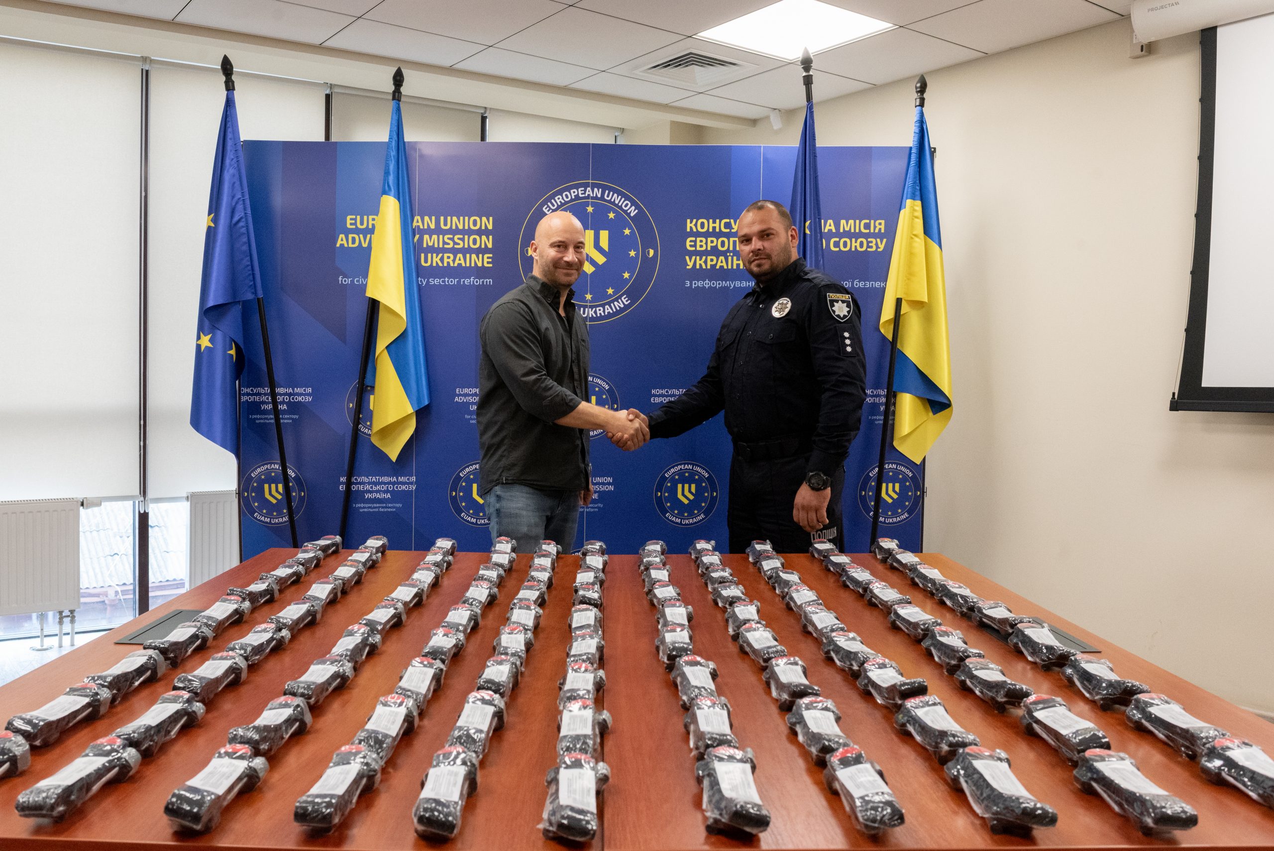 Через постійні обстріли та атаки дронів на півдні України поліцейські часто виконують функції швидкого реагування, надаючи допомогу як цивільним громадянам, так і співробітникам своїх підрозділів. Забезпечуючи правоохоронців не тільки необхідними навичками надання першої медичної допомоги, а й умінням навчати цього своїх колег, КМЄС сприяє поширенню цих навичок серед якомога більшої кількості співробітників правоохоронних органів, які працюють на прифронтових територіях. На підтримку цих зусиль КМЄС також передала Тренінговому центру ГУНП в Херсонській області 100 турнікетів CAT. Оскільки регіон продовжує щодня зазнавати атак, такі засоби для порятунку життя є критично важливими як для поліцейських, так і для цивільного населення.
