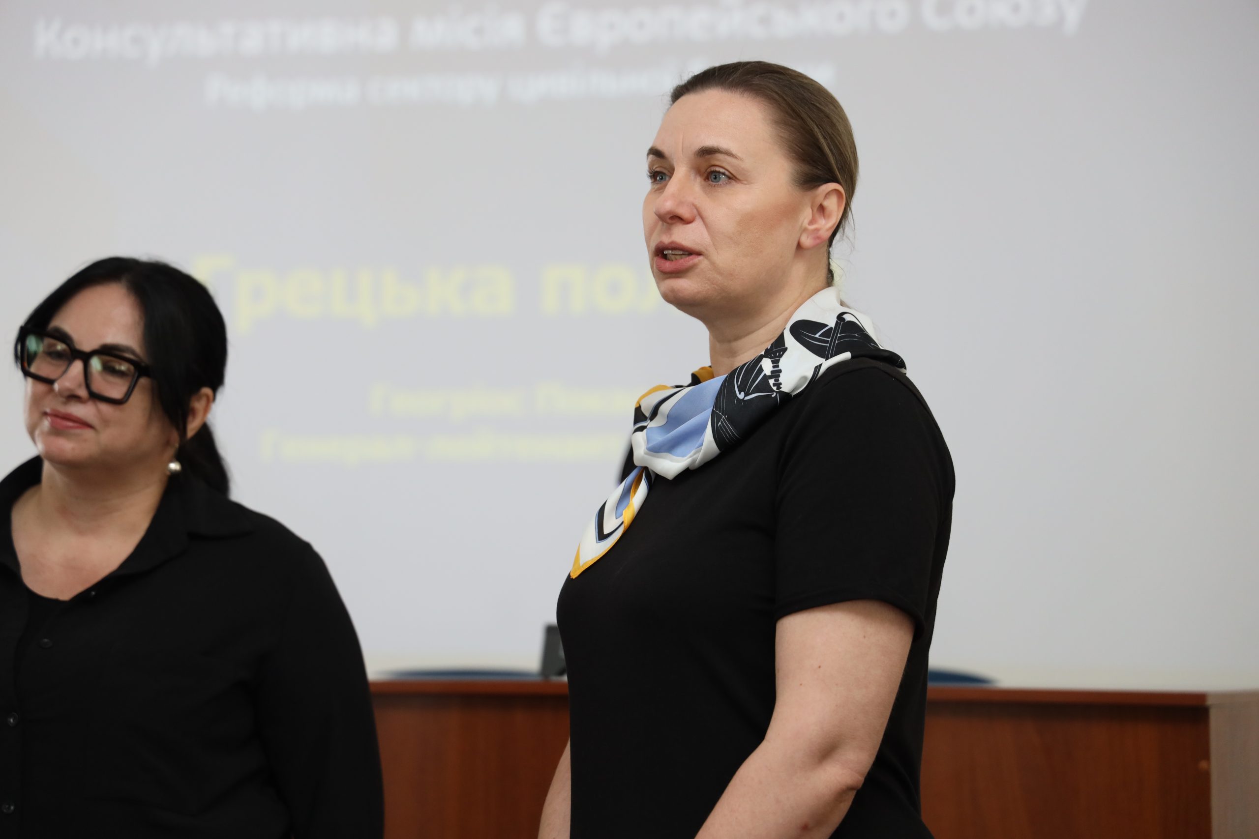 Георгіос Покас, старший радник КМЄС з питань правоохоронної діяльності, розповів про методи ефективної комунікації та їх застосування у повсякденній роботі правоохоронців. «У конфліктних ситуаціях поліцейський повинен швидко оцінити ситуацію та вирішити, чи можна застосувати методи деескалації. Якщо так, то реагувати професійно, спокійно, простою мовою, з емпатією та повагою до громадян», – пояснив він.